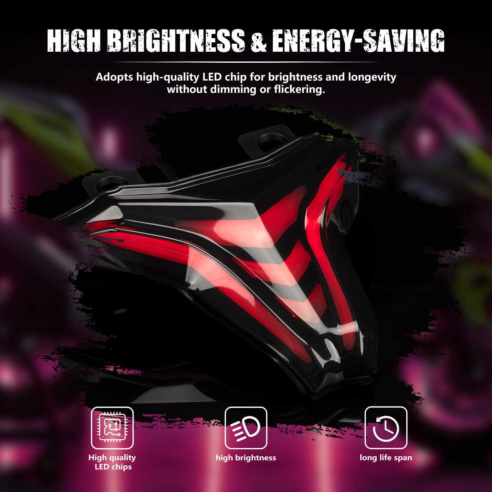XINGWU Motorcycle LED Tail Lights RGB Control for NINJA 400 2018-2024 Z400 Z250 Z400 Z1000 Z1000R ZX6R ZX10R ZX10RR Rear Brake Light DRL with Turn Signals Sequential Dynamic Indicator