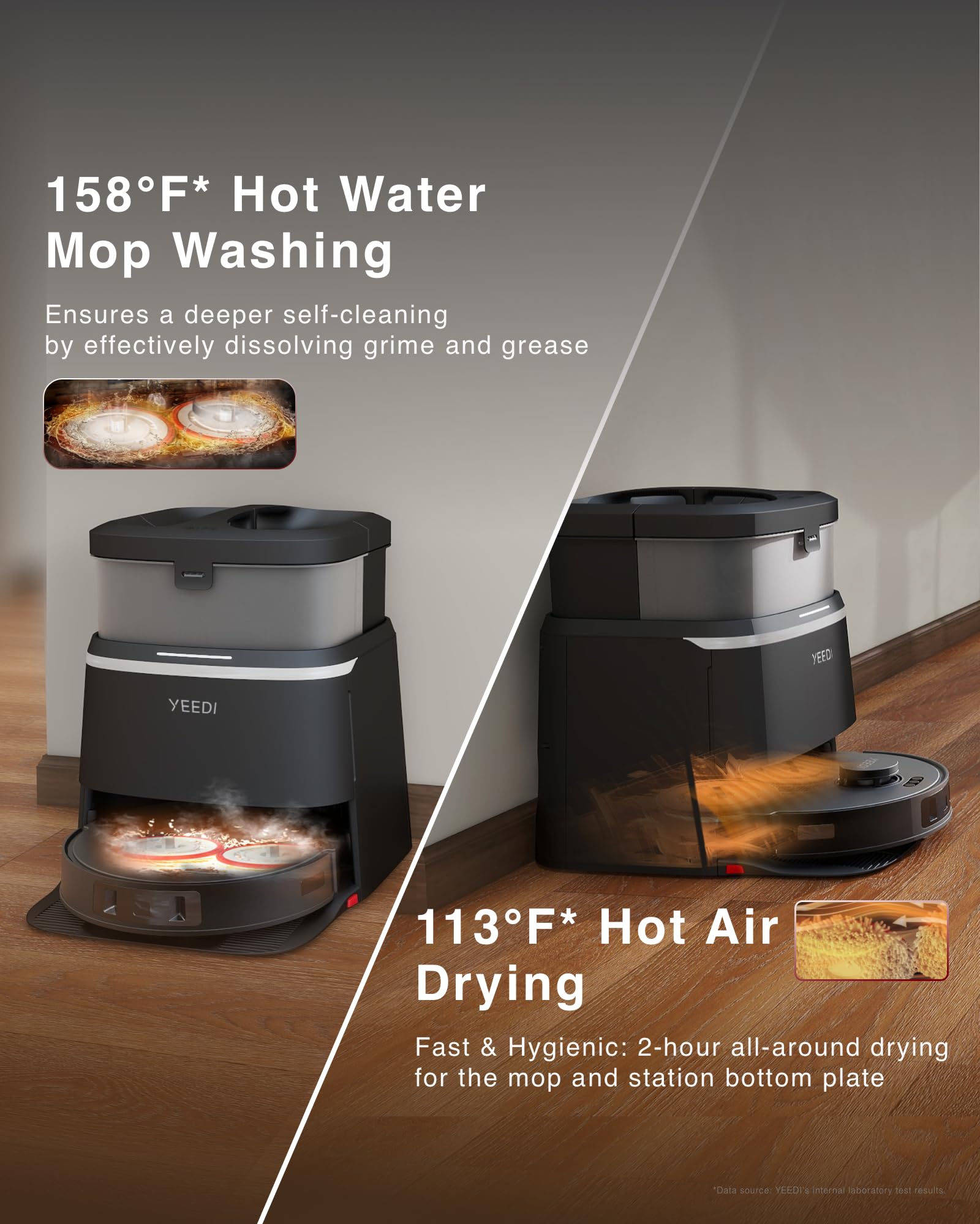 Yeedi M12 PRO+ Robot Vacuum and Mop, 11000Pa Strong Suction, ZeroTangle Technology, TruEdge Deep Mopping, Auto Mop Washing/Drying, Auto-Lift Mopping, Mini Omni Station, Black