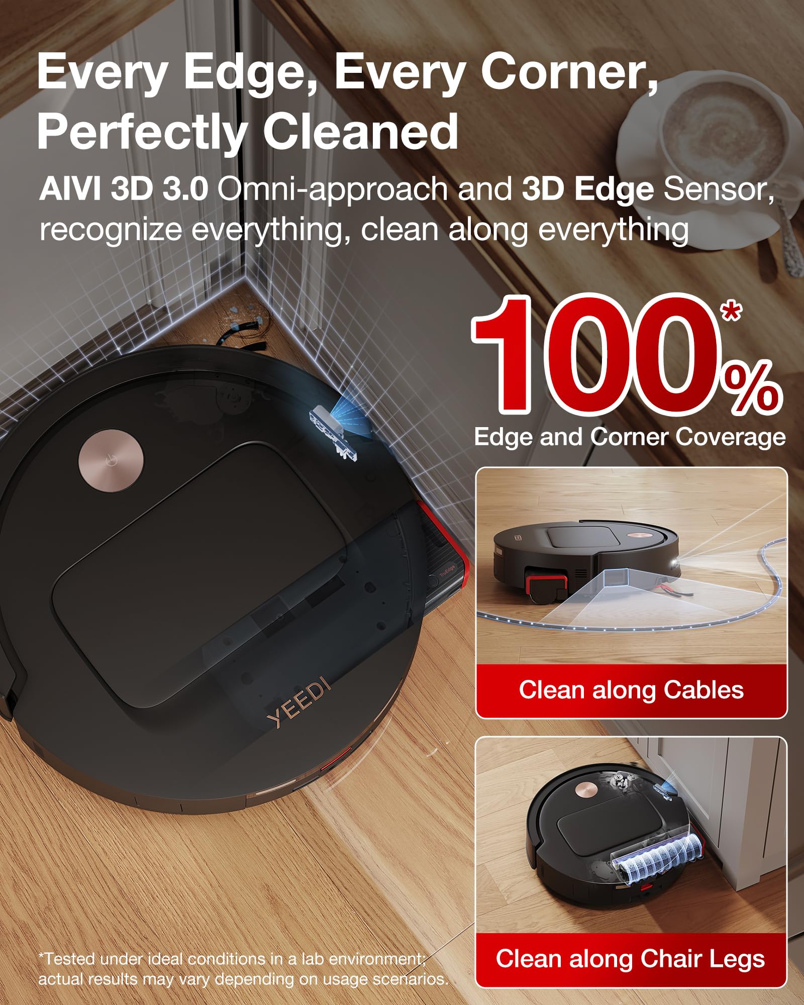 - [Smart Multi-Surface Customization] Customize cleaning via the YEEDI app: activate automatic mop lifting to protect carpets, adjust suction power and water flow across multi-levels, or enable multi-pass cleaning for high-traffic zones. Create scheduled routines and edit maps for optimized home maintenance.