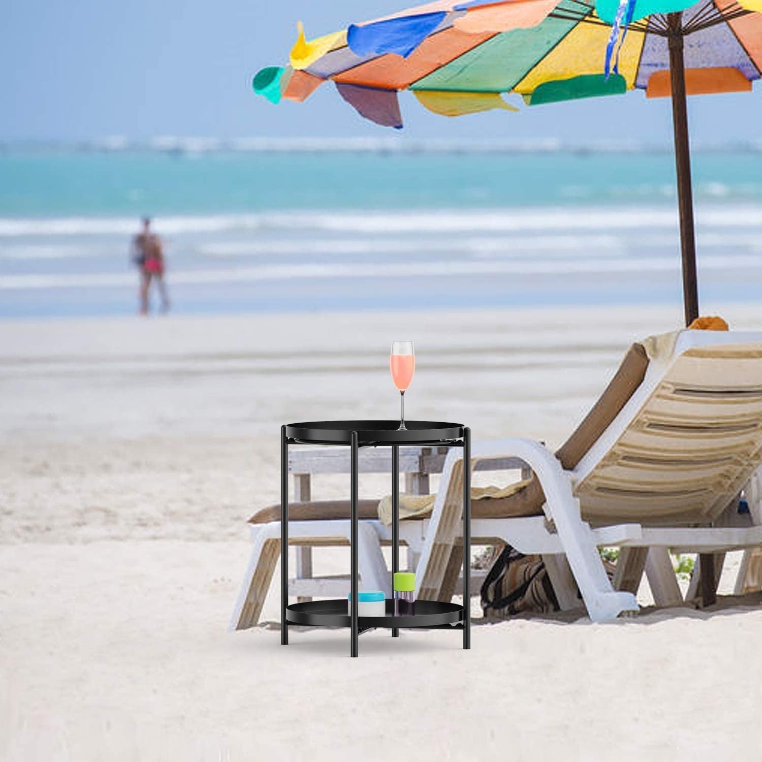 Yesker Side Table, End Table Metal Small Table Indoor Outdoor & Snack Bedside Table Sofa Side Snack Table Accent Coffee Table Living Room Bedroom Balcony 2 Layer