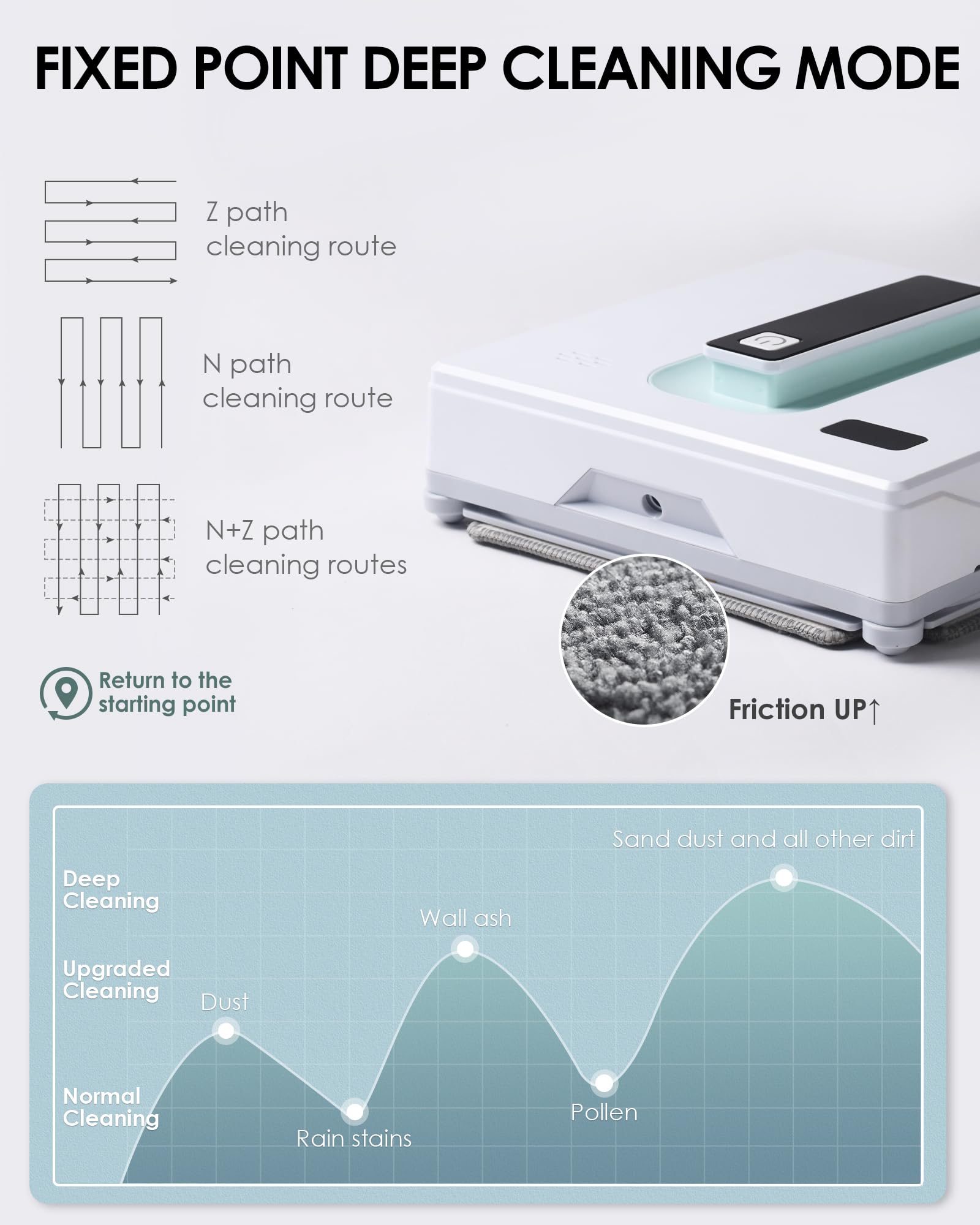 - 【Spot Cleaning Mode】The window robot cleaner can be directed to areas that require thorough cleaning using either the remote control or the Yoolax Home App. Our upgraded cleaning cloth can effectively remove surface dust and slight stains. Attention: To optimize cleaning outcomes and minimize streaking, you can dampen the cloth slightly before starting to clean and couple it with the water spray function during use. It is recommended to use 30% alcohol mixture