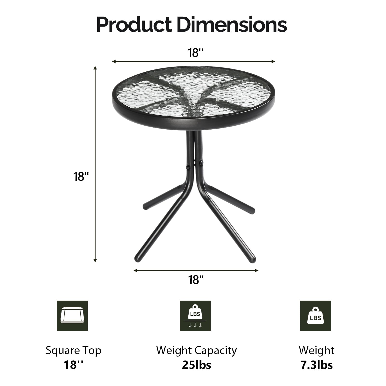 Zimtown 18" Round Tempered Glass Outdoor Patio Side Table, Metal Frame End Table, Black