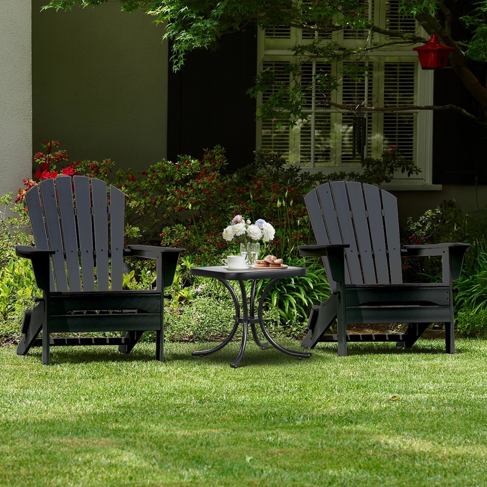 Zimtown 18" Square Tempered Glass Outdoor Patio Side Table, Metal Frame End Table, Black