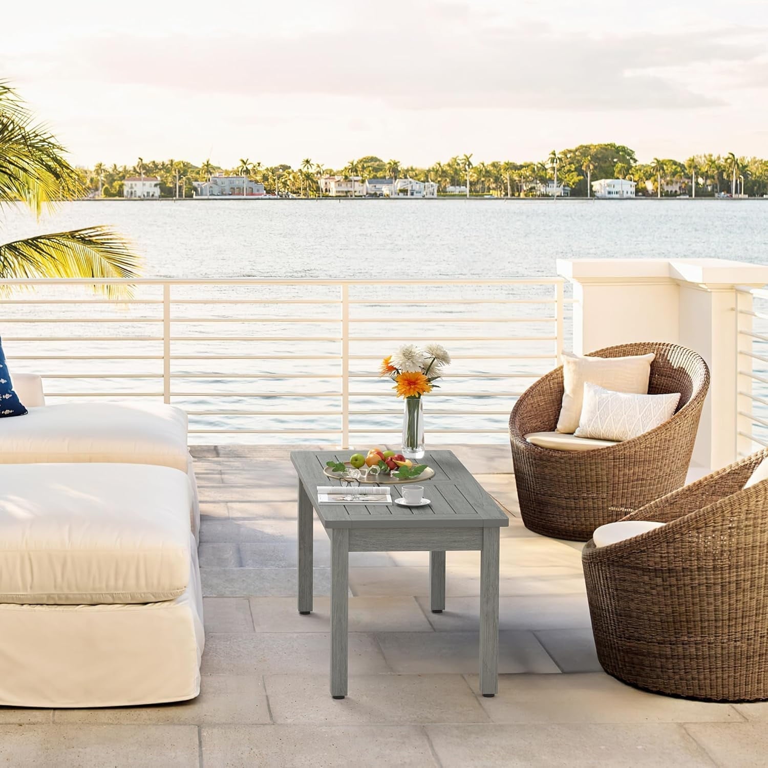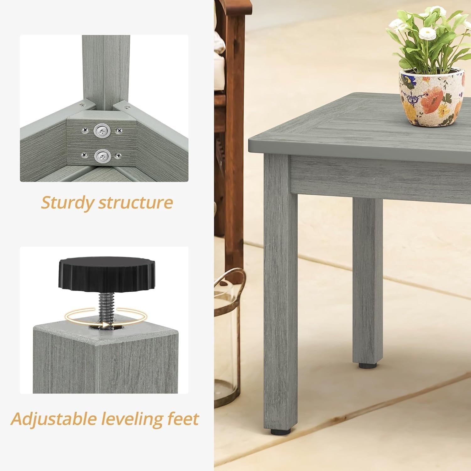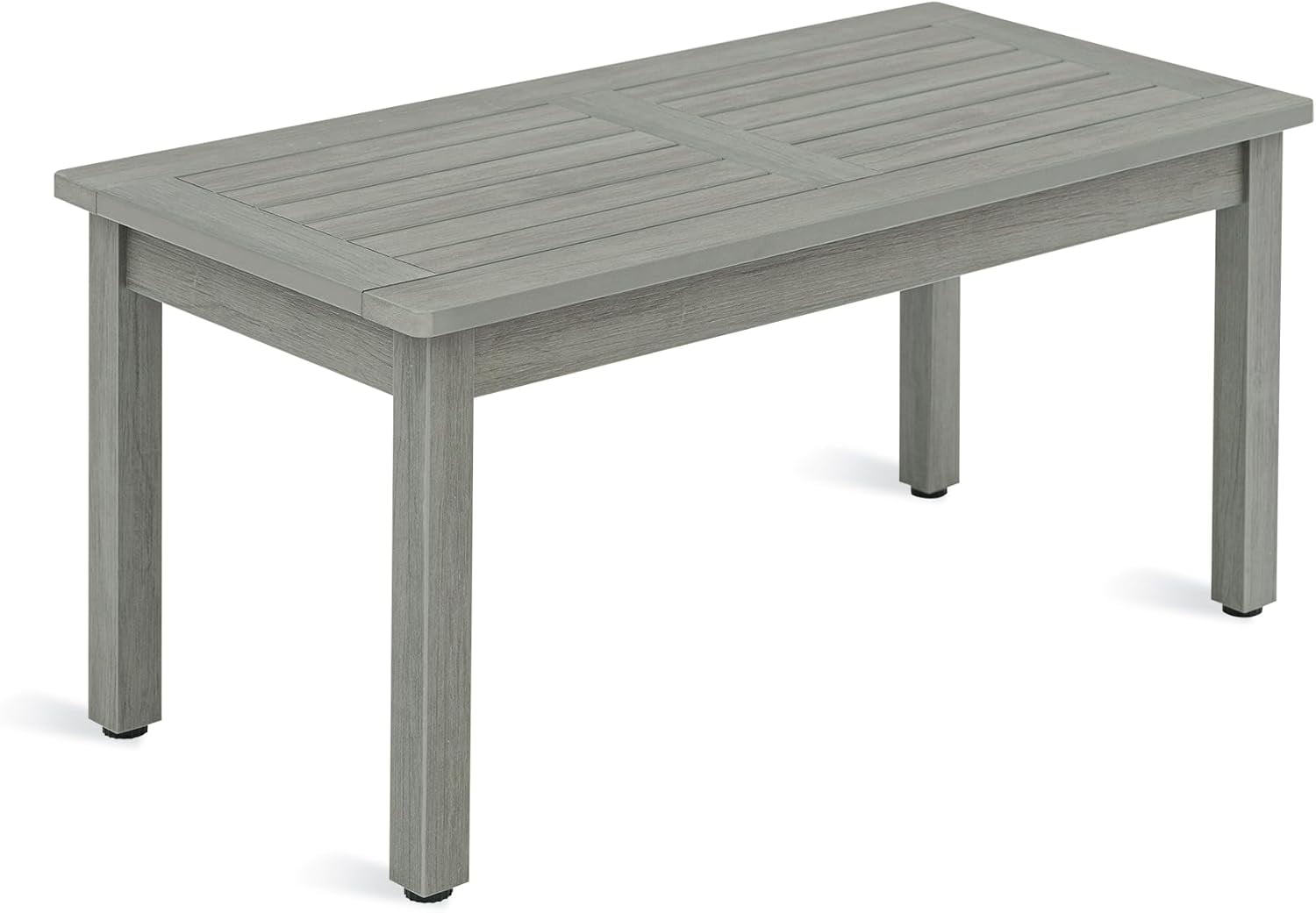 ZMMOO Outdoor Coffee Table Rectangle, HDPS Patio Coffee Tables for Outside, All Weather Patio Coffee Table with Slatted Tabletop for Deck, Garden, Balcony, Indoor or Outdoor Use, Light Gray