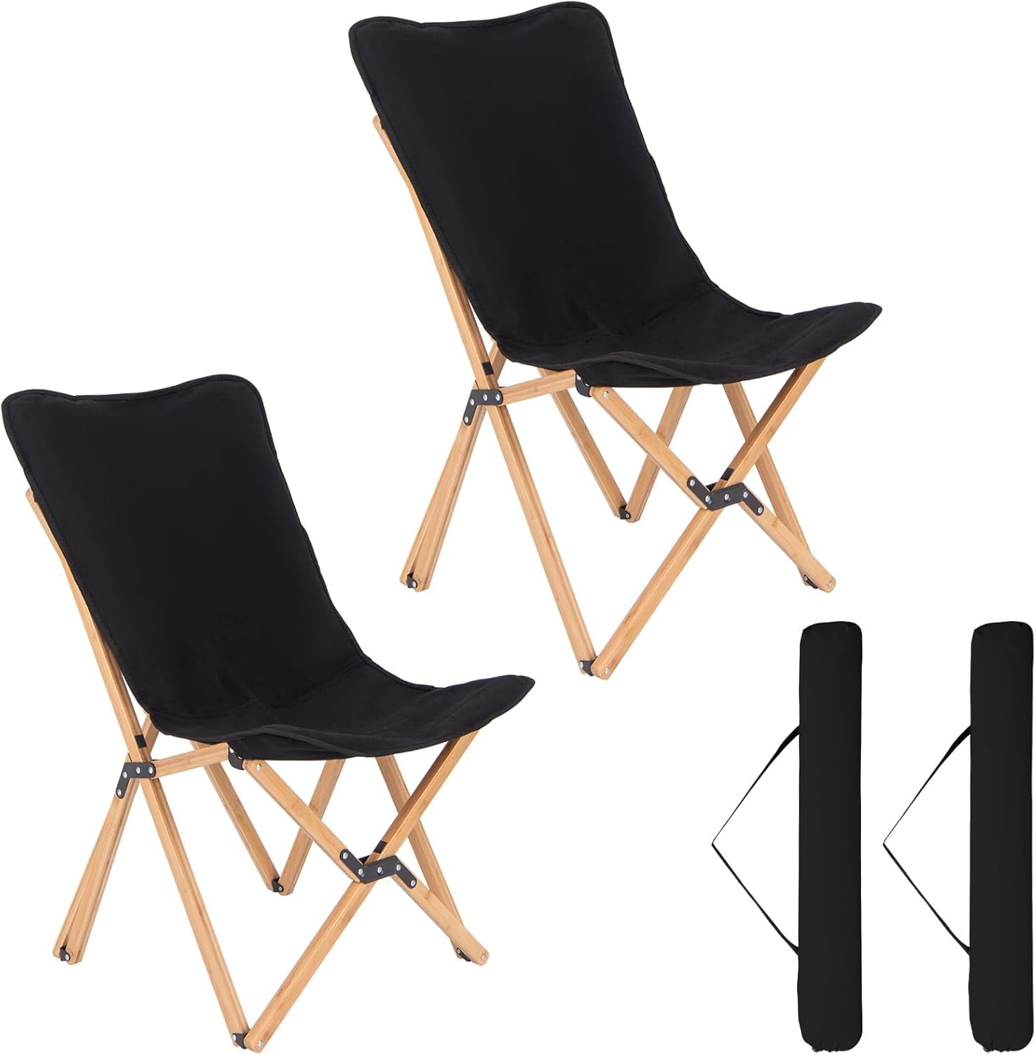 ZOPan Camping Chairs 2 Pack, Folding Beach Chairs for 330lbs, Outdoor Butterfly Chair, Portable Lawn Chairs for Picnic Fishing Hiking Mountaineering, Lightweight Bamboo Frame No Assembly (Black)